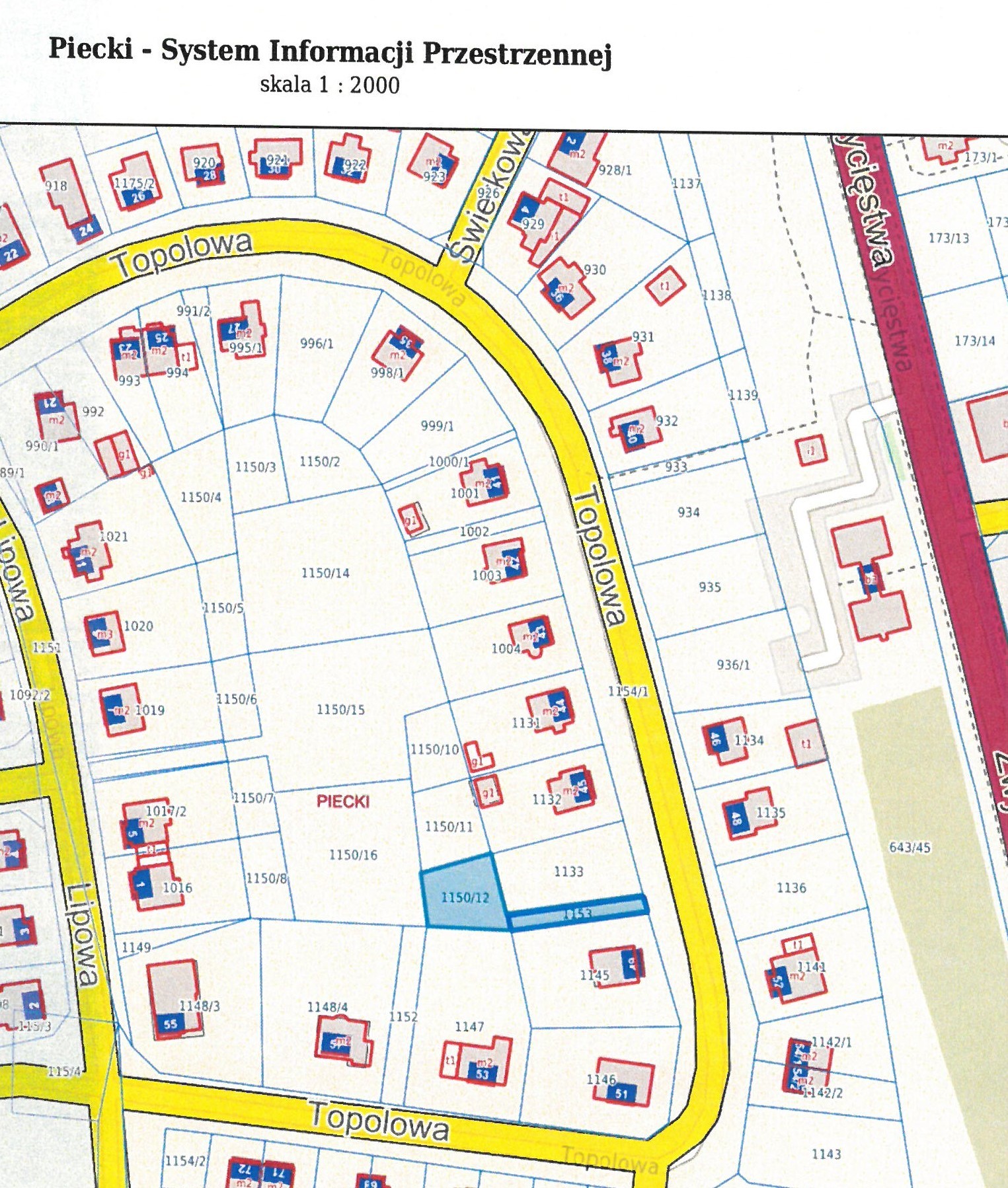 Działki położone są w północnej części miejscowości Piecki przy ul. Topolowej. Działka nr 1150/12 posiada w miarę regularny kształt, zbliżony do trapezu, zaś działka nr 1153 posiada kształt regularny prostokątny, mocno wydłużony. Teren działek cechuje się w miarę płaskim ukształtowaniem. Działki są niezabudowane, nieogrodzone, nieutwardzone, nieużytkowane rolniczo.